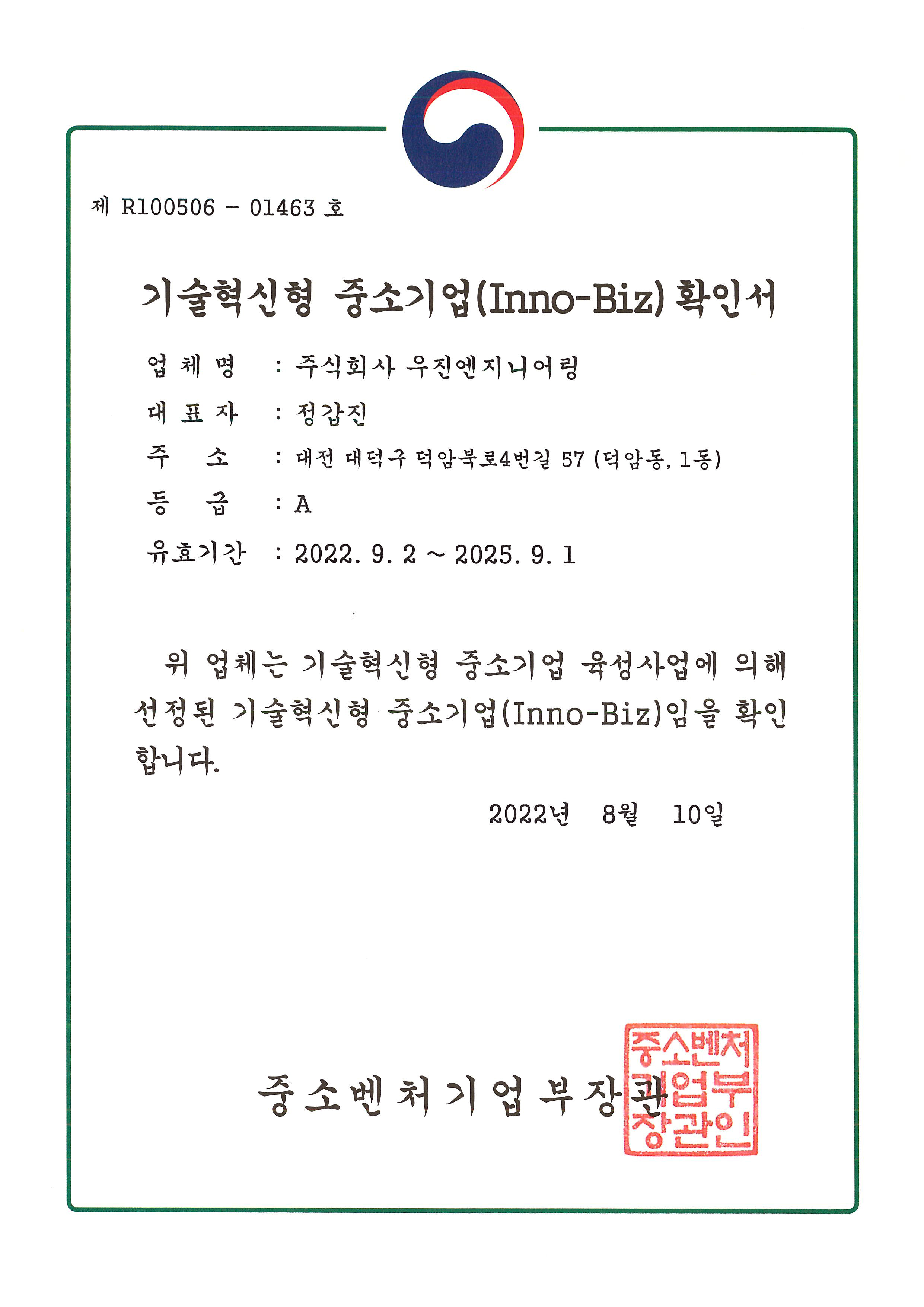 경영혁신형중소기업확인서